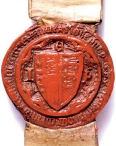 On 6th October 1361 Joan publicly plighted her troth to the Prince before Archbishop Islip at Lambeth and four days later, in presence of most of royal family including the King and a large congregation, the marriage was celebrated at Windsor.  This was a very short time lapse in which to call the banns and arrange a royal marriage, but the King saw it necessary to get the legal knot tied as fast as possible before anything else could go wrong.  Joan was now Princess of Wales, later Princess of Aquitaine, and the future Queen of England.  This is a rare example of Joan’s seal.